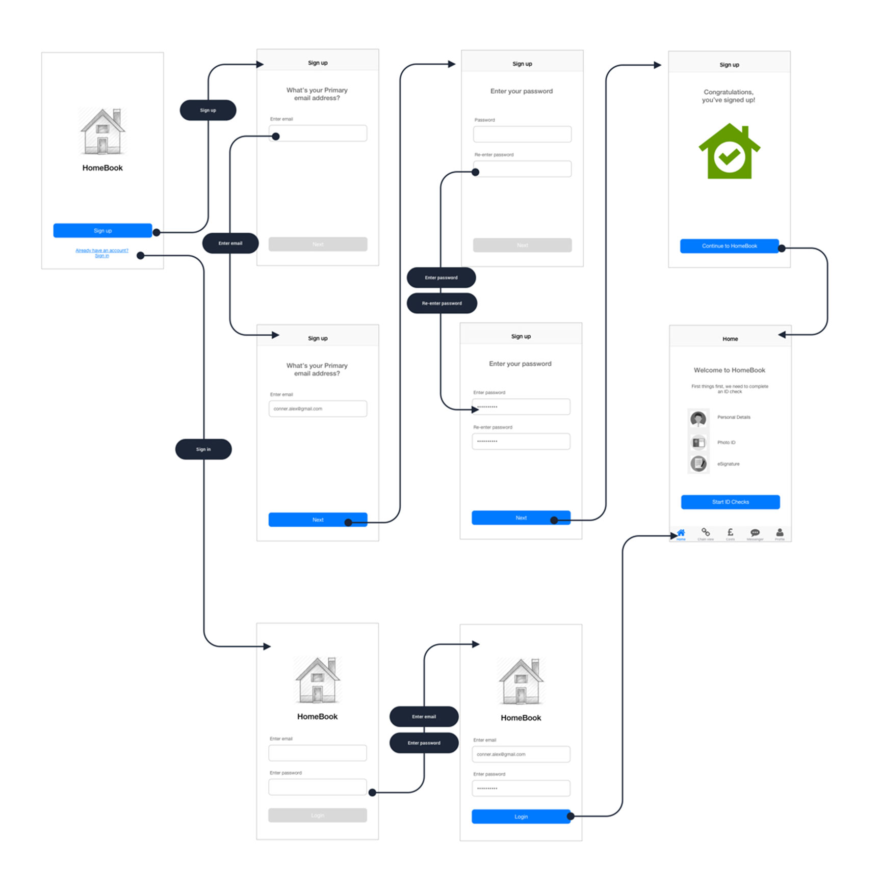The next stage was wireframing. The user flows were worked up into screens and a prototype was created. A set of scenarios was produced for testing the prototype on three users. Feedback was analysed and several changes were made to the design.