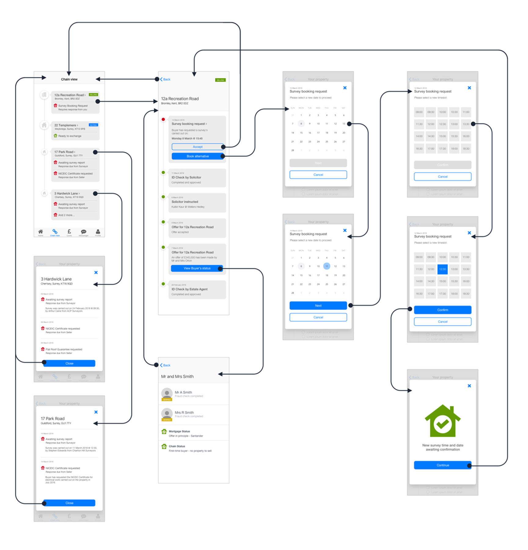 The app forms part of a bigger piece of Information Architecture involving several parties and linking to varying API sources. It comprises the user verification steps and pieces together all the properties that form the chain.