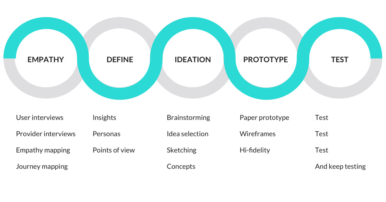 I have principally followed the five D-school Design Thinking methodology steps - Empathy, Define, Ideate, Prototype and Test.