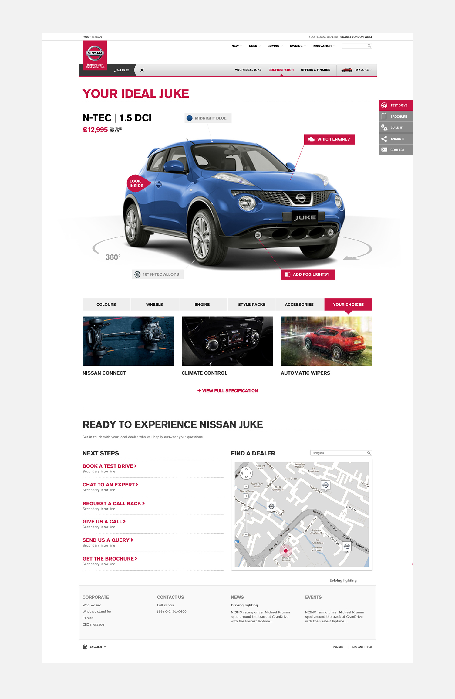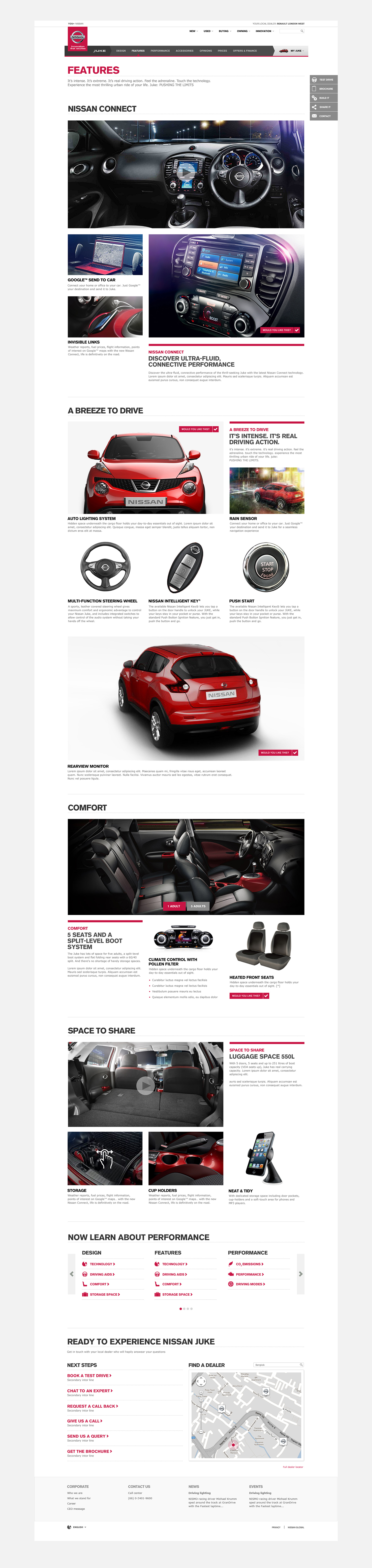 I worked as the senior designer on Nissan, creating the prototype designs for the responsive global site. Working alongside a team of UX designers, I would take the user journeys and wireframes and develop the visual design across 4 breakpoints ready for development. The project was built on bootstrap and CQ5.